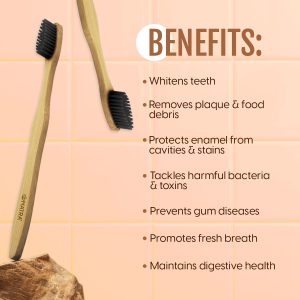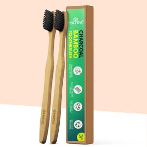 Matra Charcoal Bamboo Toothbrush with Soft Bristles & Floss Tip for Complete Oral Care (2 pc)