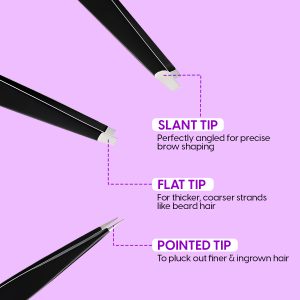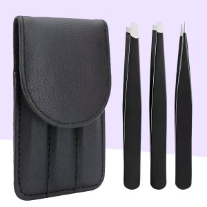 Matra Tweezer Set of 3 – Stainless Steel Tweezers with Leather Pouch for Eyebrow Shaping, Facial Hair, Ingrown Hair & Splinter Removal – Precision Pluckers for Lash Extensions & Rhinestone Application