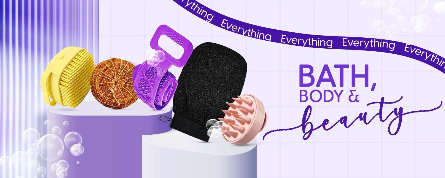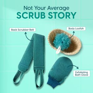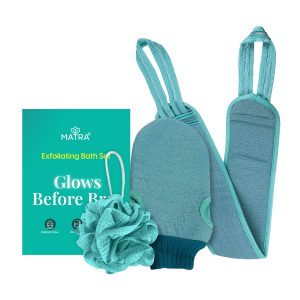 Matra Exfoliating Bath Set Body Glove Loofah Sponge Back Scrubber Belt Shower Exfoliator Combo 3Pc
