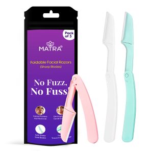 Matra Foldable Facial Razors (3 pcs) – Reusable Face & Eyebrow Razor with Sharp Blade for Instant & Painless Facial Hair Removal – Face Razor Dermaplaning Tool for Upper Lips, Peach Fuzz, Sideburn