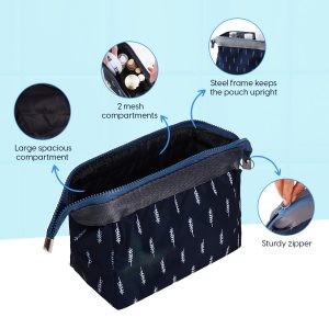 Matra Makeup Pouch Cosmetic Organizer Toiletry Travel Bag Vanity Jewelry Kit Portable Purse with Zipper for Men Women and Girls in Blue Feather