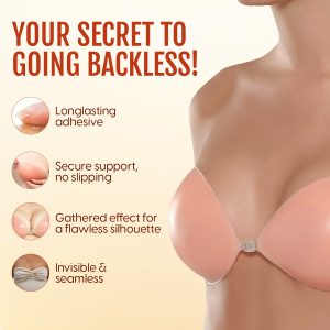 Matra Wings Strapless Bra Silicone Adhesive Invisible Stick On Backless Sticky Wire Free Lightly Padded Silicon Reusable Lift Cups in Black with Free Fashion Tapes for Women and Girls