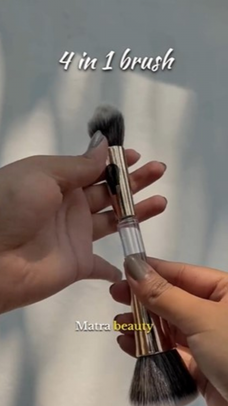 Matra 4 in 1 Travel Makeup Brush – Dual Ended Makeup Brush with Powder, Foundation, Eyeshadow Blending & Flat Brushes – Multifunctional Cosmetic Applicator with Soft Synthetic Bristles for Full Face