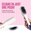 ONE PULL RETRACTABLE DESIGN: With this self-cleaning comb, skip the hassle of having to pull out a tangled mess each time you brush your hair. Simply push the loop at the bottom of the detangler and watch the bristles retract, leaving the tangled hair behind for easy disposal.