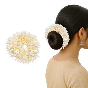 Matra Hair Gajra Scrunchie (1 pc) – Mogra Scented Artificial Gajra Accessory for Bridal Bun Juda, Ponytails & Flower Jewelry – Reusable Hair Veni Rubber Band for Weddings, Parties & Classical Dance