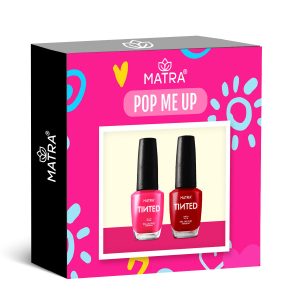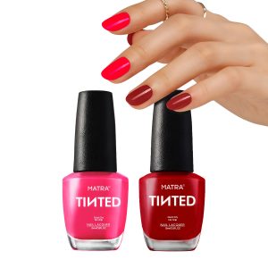 Matra TINTED Nail Polish Set of 2 Red, Poppy Pink Enamel Lacquer Paint Combo Gift Pack