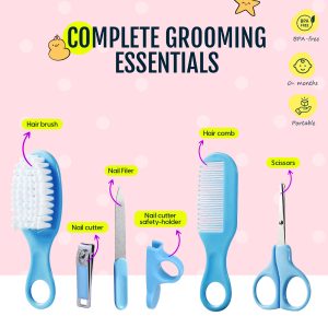 Matra Baby Grooming Kit with Hair Brush, Comb, Nail Clipper, Filer, Scissors Portable Baby Care Set (6 pcs)