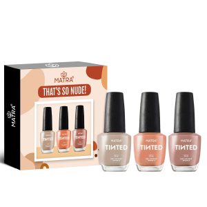 Matra TINTED Nail Polish Set of 3 Nude Brown, Dusty Brown, Peach Enamel Lacquer Combo Gift Pack