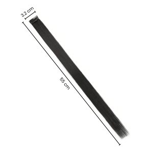 Matra Black Hair Extensions Straight Artificial Clip On Strip Synthetic Long Wig Streak 55cm