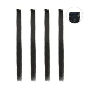 Matra Black Hair Extensions Straight Artificial Clip On Strip Synthetic Long Wig Streak 55cm 4Pc
