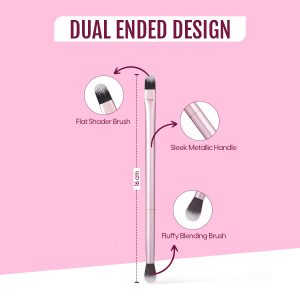 Matra Eyeshadow Brush – 2 in 1 Double Ended Eye Makeup Brush Applicator with Fluffy Blending Brush & Flat Shader Brush – Multifunctional Crease Brush for Smooth Transition, Brow Defining & Concealing