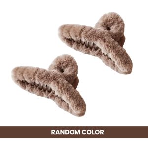 Matra Large Fur Hair Claw Clips for Women | Soft Furry Clutcher | Strong Hold Korean Hair Accessories | Non-Slip Grip Hair Clamps | Stylish and Durable Hair Clips for Thick, Thin, Long, and Curly Hair, Random Color (Pack of 2, Random Color)