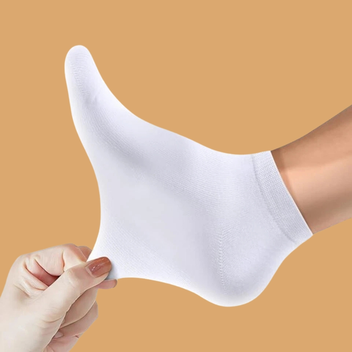 - Take off the cover and unroll the socks. Smooth them out by hand and wear them.