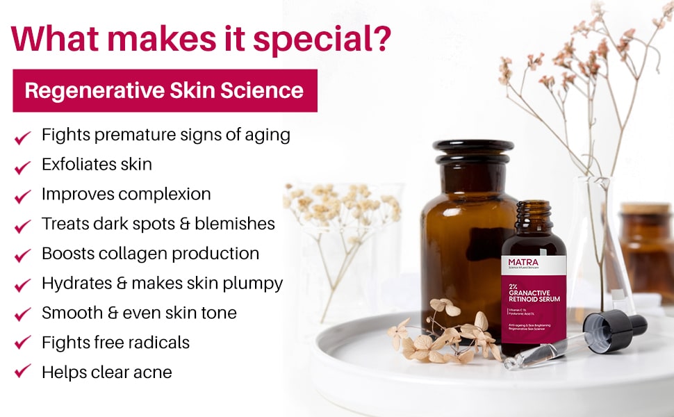 - IMPROVES TEXTURE, UNCLOGS PORES AND CLEARS ACNE: Loaded with tremendous properties, Matra 2% Granactive Retinoid serum seeps deep into the layers of the skin, unclogs pores, removes dirt and impurities from the skin, and regulates oil balance. This evens out bumpy texture, clears acne, and gives you smooth and flawless skin in no time!