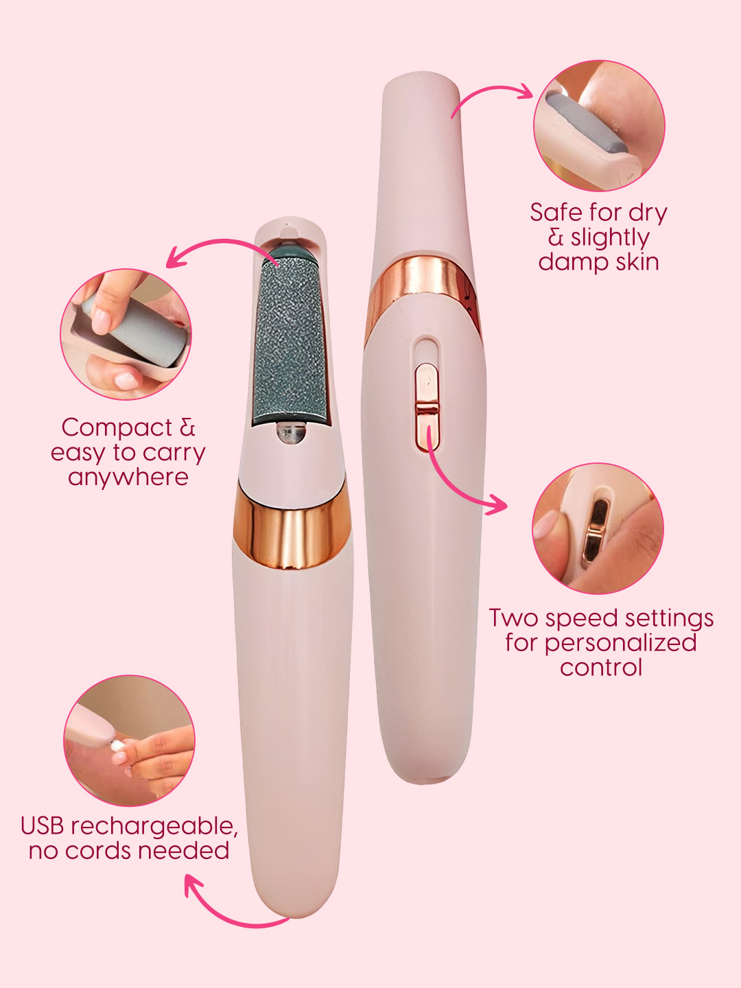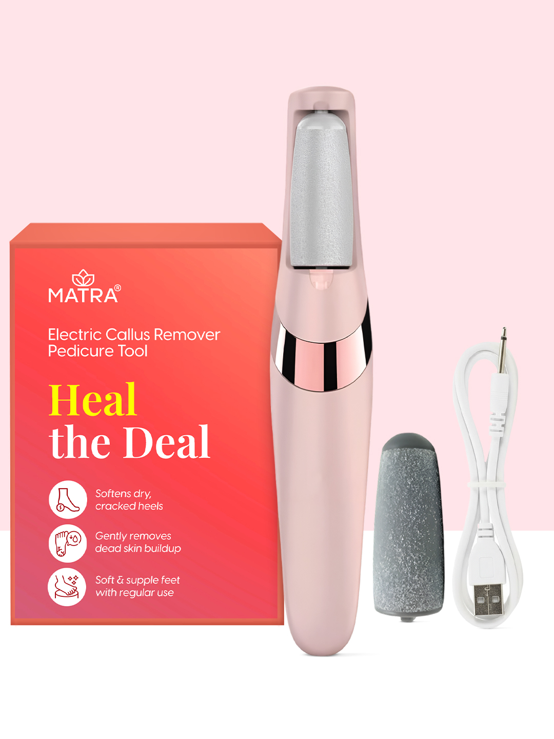 - Softens Hard & Dry Feet: Matra’s electric foot filer gently buffs away hard and dry patches to restore soft, healthy-looking feet. This rechargeable foot filer scraper for pedicure treats cracked heels, rough patches, toes, sides of the feet and thick calluses for smoother, softer feet. Our feet exfoliating tool makes pedicure simple and cost-effective, yet super efficient.