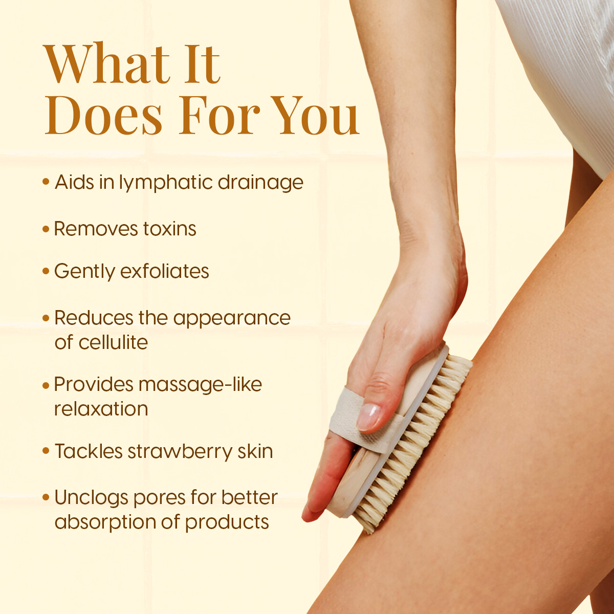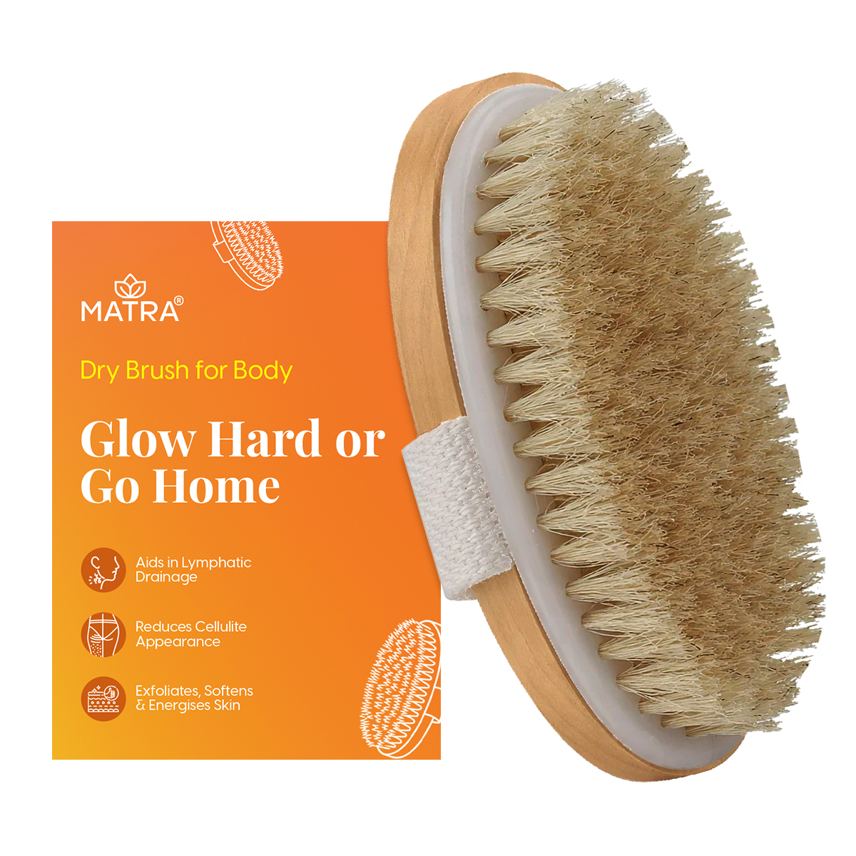 Matra Exfoliating Oval Dry Bath Brush Natural Wooden Body Scrubber for Lymphatic Drainage, Cellulite