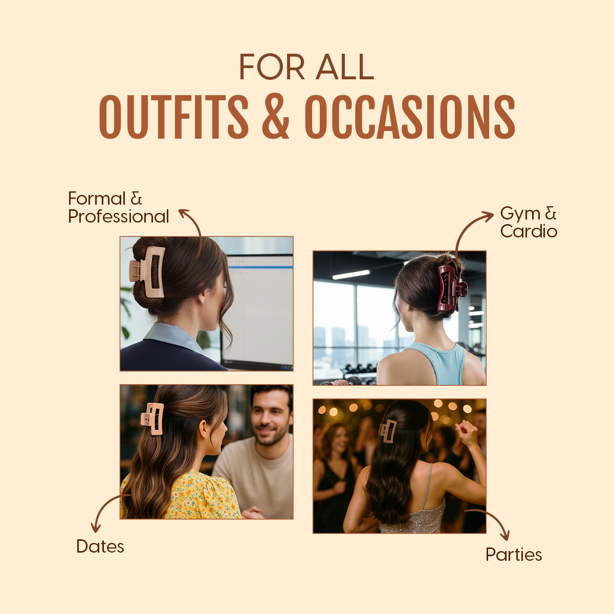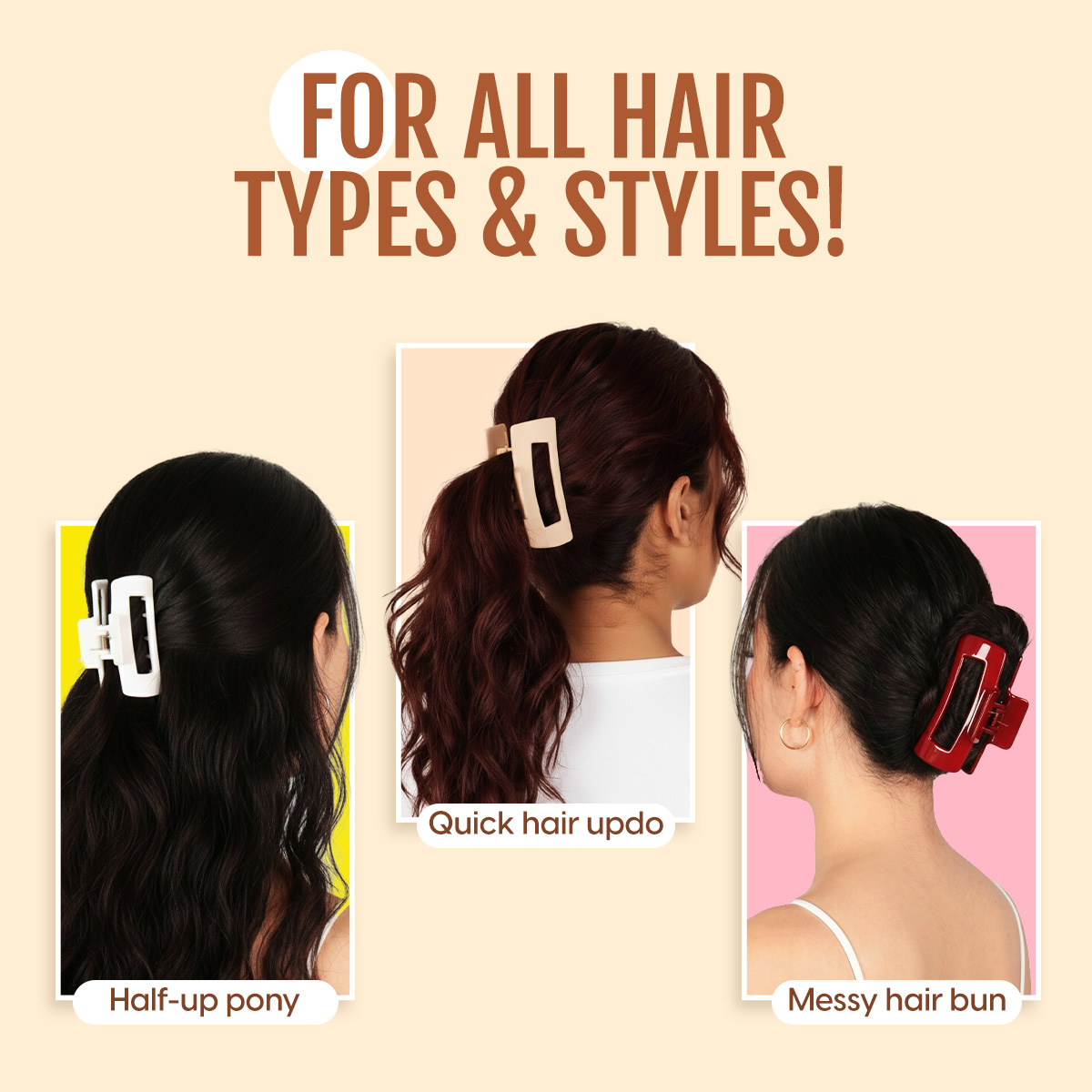 - Suits All Hair Types & Occasions: This soft, flexible clutcher does not discriminate! It looks chic on all hair types and lengths, be it thick or fine, long or short, curly, wavy or straight. Our versatile hair clip adds personality to every hairstyle, like half ponies, ponytails, and messy buns. Sleek and modern, this unbreakable claw clip is the perfect hair accessory for various looks and outfits. Minimalistic, casual, professional, or wild streetwear, this large clutcher complements it all.