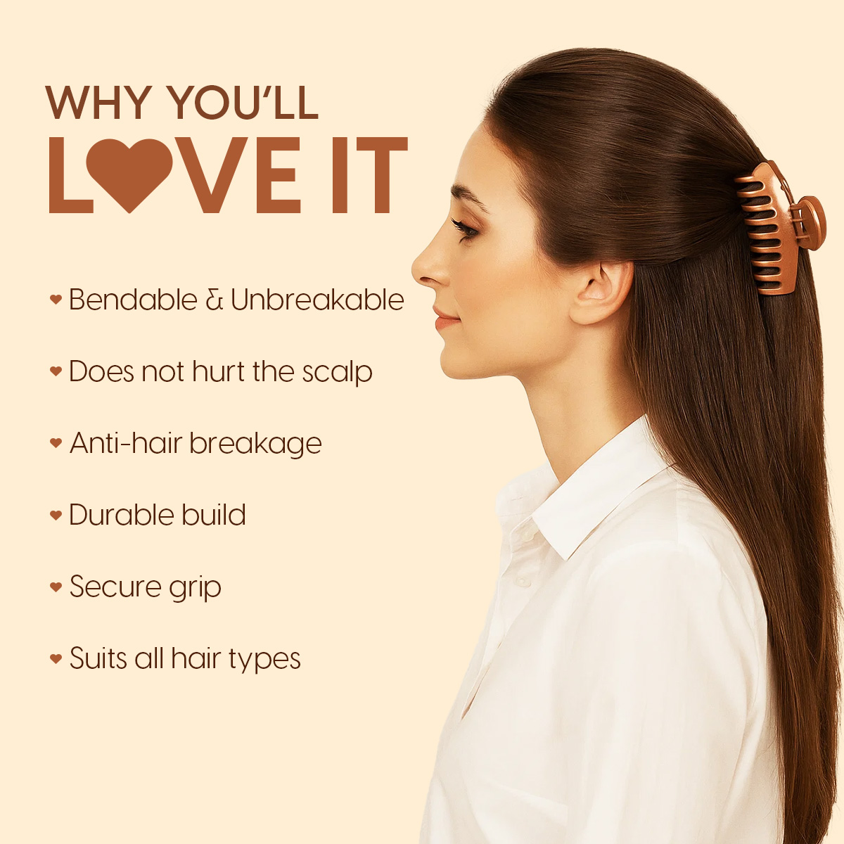 - Squishy & Flexible: Viral for the right reason, this soft clutcher clip is unbreakable and bendable. Its premium build ensures it remains durable and intact throughout. Twist it, turn it, fold it, our unbreakable clutcher won’t give up. Stays securely in place all day with the help of its strong-grip teeth, a bendable claw clip is just what you need.