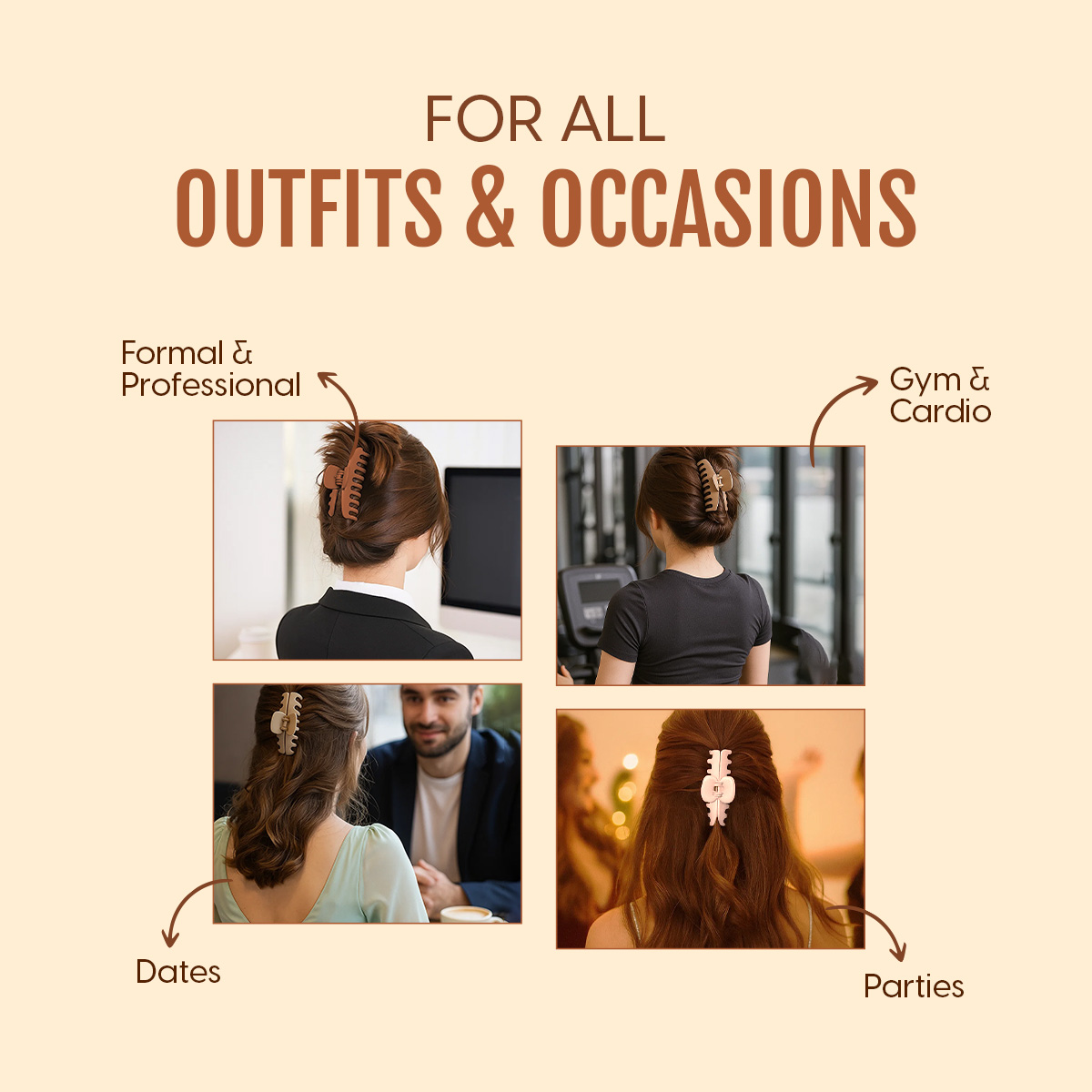 - For Every Occasion: Sleek and modern, this unbreakable claw clip is the perfect hair accessory for various looks and outfits. Minimalistic, casual, professional, or wild streetwear, this large clutcher complements it all.