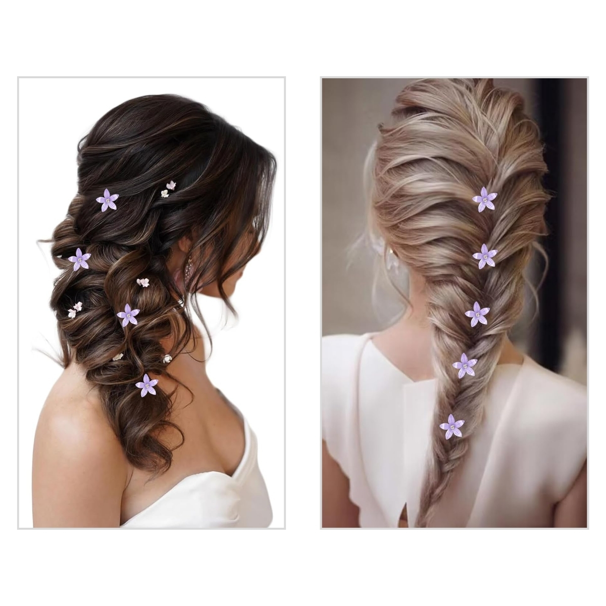 Gently open the flower hair clip, place it over a small section of hair, braid, or plait, and press to secure. Style multiple mini hair clips together for a playful, decorative look.