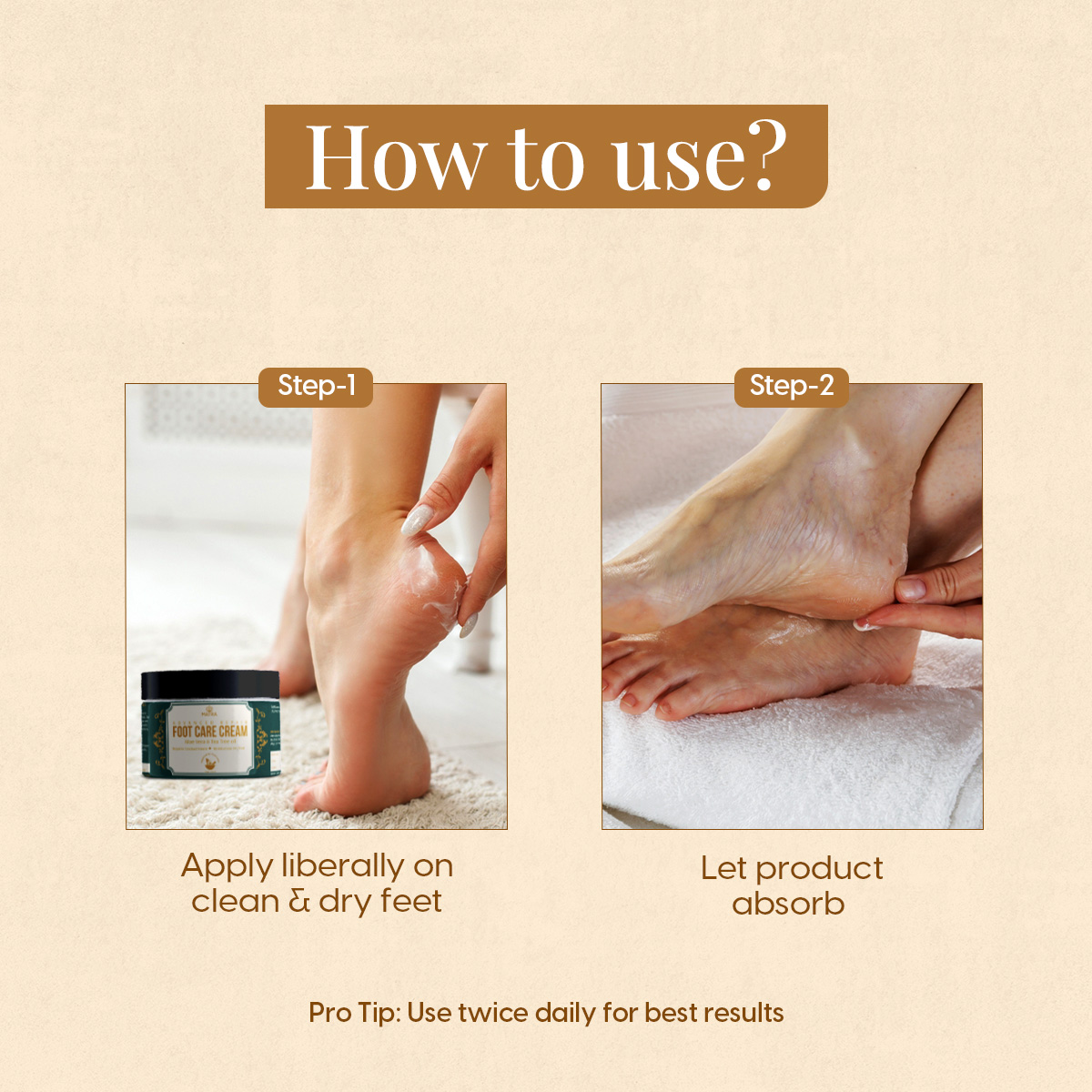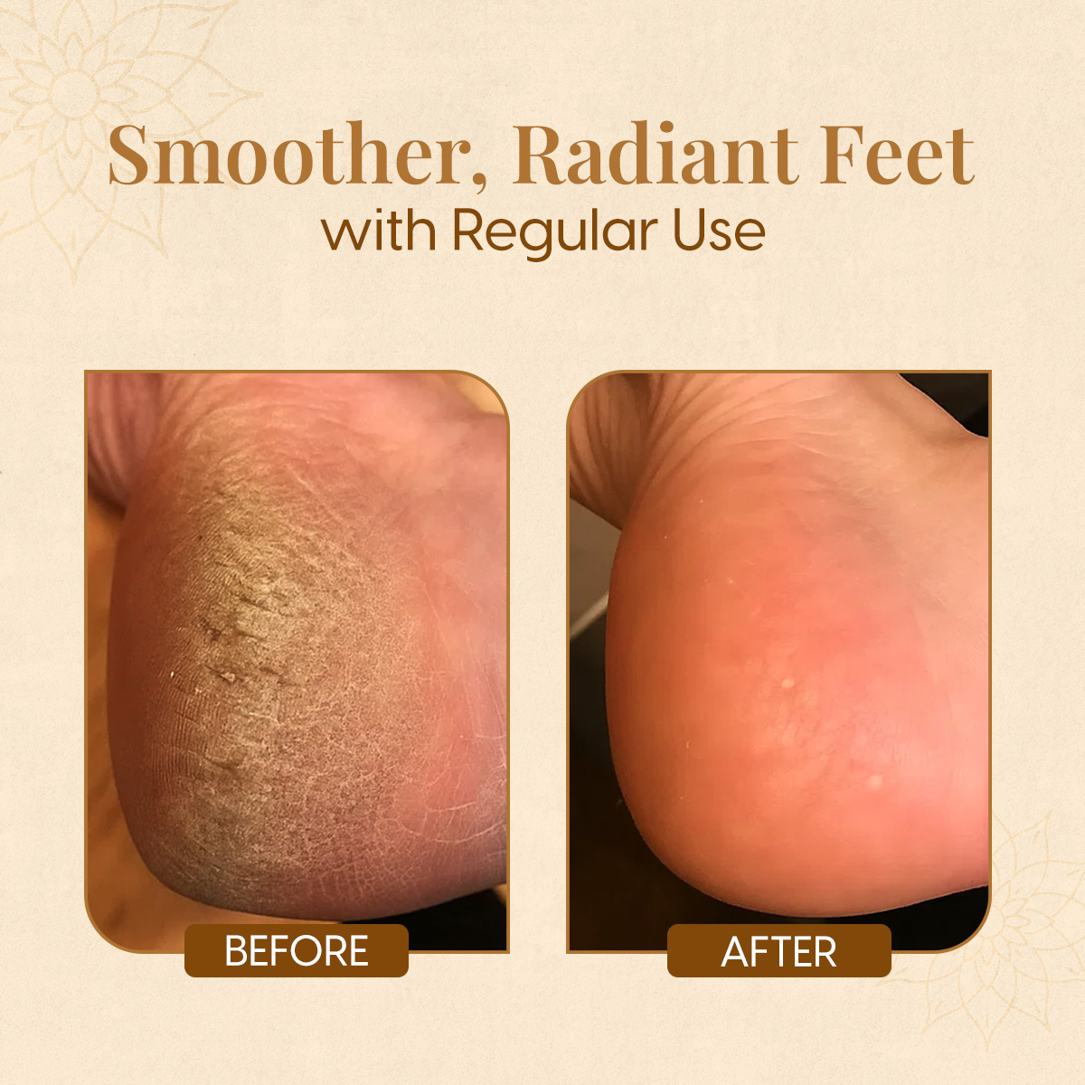A: Foot cream incorporates a special Ayurvedic formula that works towards healing and soothing your cracked and dry feet, providing care and nourishment to your feet.