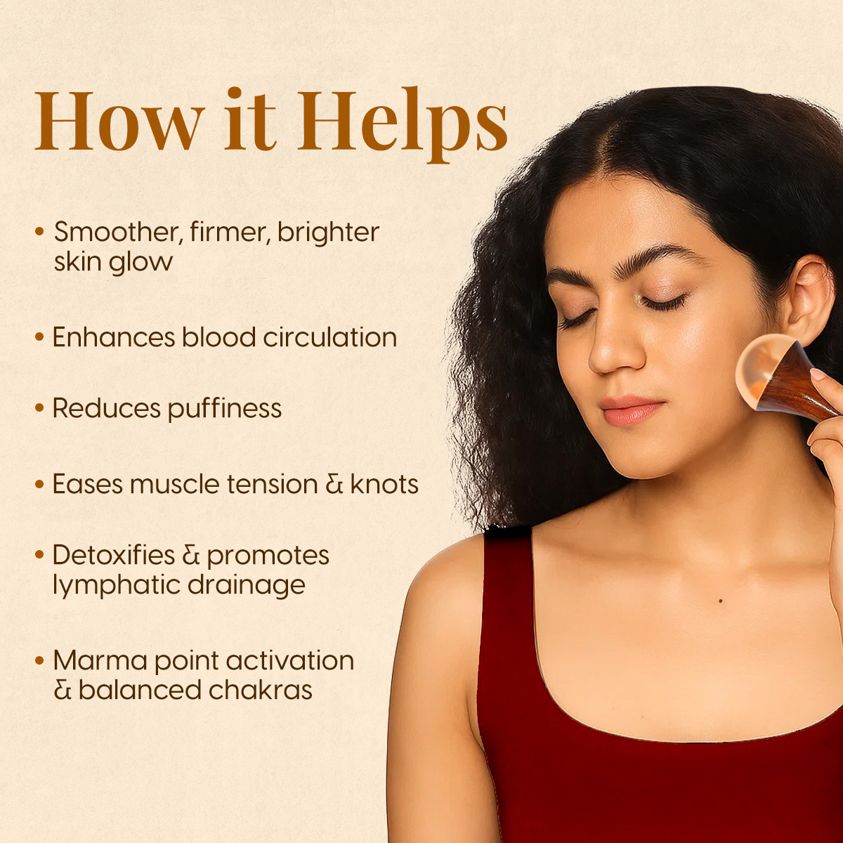 - Detox, Stress Relief & Healing: The metal dome of the kansa wand massager interacts with skin oils to draw out heat, acidity and impurities, supporting lymphatic cleansing and pH balance. Gentle circular motions relieve stiffness for deep relaxation. Perfect for toning, de-puffing and promoting firmer, healthier-looking skin.