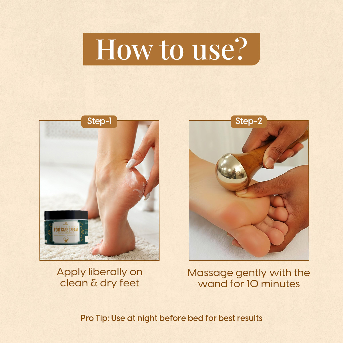 - Enhanced Absorption, Firmer Texture & Relief: Massaging the feet cream in with the kansa foot massager wand boosts micro-circulation, reduces stiffness and supports natural detox for the feet and lower legs. This pairing helps repair cracks faster while improving suppleness and warmth. Expect lighter legs, softer heels and a soothing, spa-like experience every day.