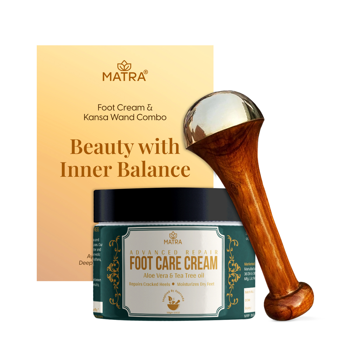 - Glow, Balance & Restorative Comfort: The duo blends moisture therapy with Ayurvedic marma activation to revive both skin health and energy flow. While the foot cream brightens and nourishes, the kansa massager wand sculpts, eases puffiness and grounds the senses. A holistic ritual for softer feet, calmer mind and deeply revitalised wellbeing.