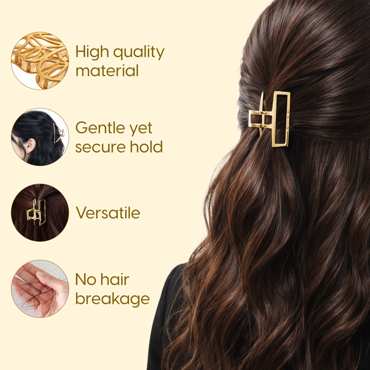 - Durable Material & Everyday Use: Made from high-quality materials, these golden hair clutchers are lightweight yet long-lasting. The smooth finish prevents snagging, making our small golden claw clips safe for daily wear. These are designed to resist fading and breakage even with regular use.