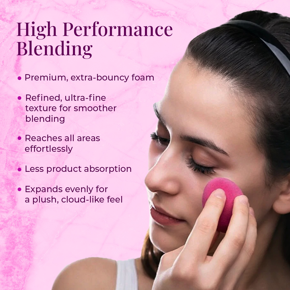 - No Product Wastage: Our beauty sponge absorbs far less foundation and concealer compared to regular blenders. This means more product ends up on your face and not inside the sponge, helping your makeup last longer. You get fuller, more even coverage using less product, making every pump count.