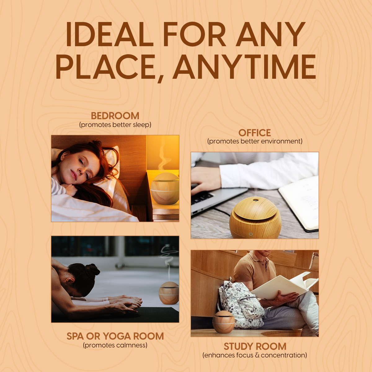 - EFFICIENT COOL MIST HUMIDIFIER: This humidifier aroma diffuser efficiently adds moisture to the air, relieving dry skin, congestion, and irritated throat while improving overall air quality. With cool mist technology, it creates a comfortable and healthy environment, making it ideal for bedrooms, offices, and even cars.