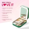 - Space Saving & Accessibility: Measuring 16.5 x 11.3 x 5.7 cm, our lightweight vanity box with LED mirror is easy to carry and fits inside most makeup pouches. It is compact and saves space in your bag by keeping items organised and easily accessible, so you won’t have to scavenge for that one lip liner. Our makeup organiser box is ideal for business trips, vacations, holidays & weekend getaways.