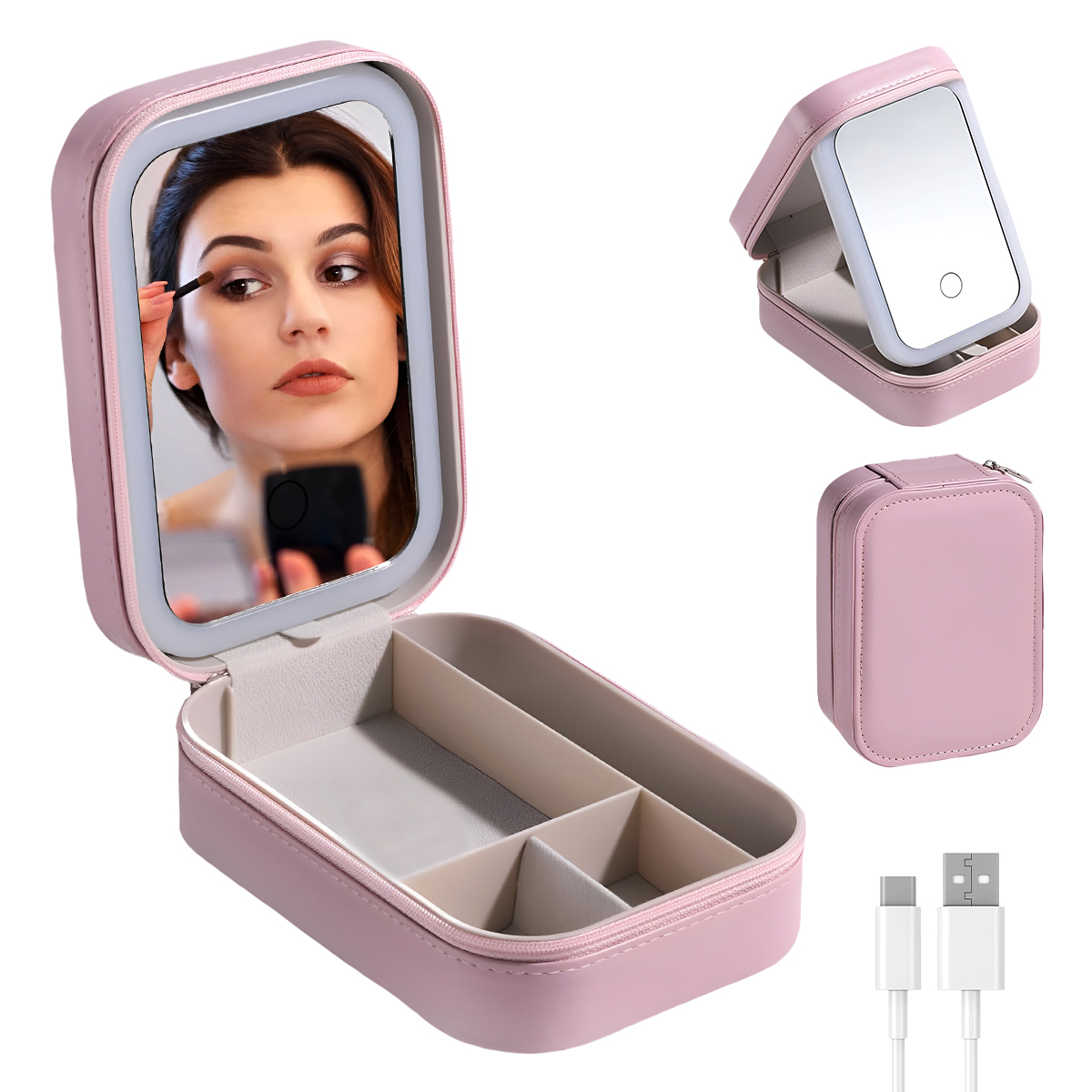 - Convenient High Performance: The makeup mirror with LED light of this jewellery box with light has a long battery life and can be charged easily using the cord that is provided. The mirror provides a true image without any distortions, enabling accurate makeup application.