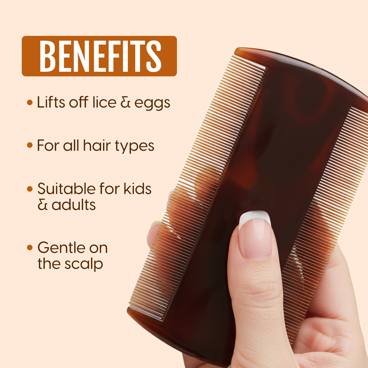 - User-Friendly & Versatile Use: Our comb for lice removal is suitable for all hair types, be it thick, thin, fine, curly, or straight, once detangled. The ergonomic handle provides a firm, comfortable grip for better control during use. Lightweight and compact, the lice comb for kids and adults is easy to carry, store, and use regularly at home or while travelling.