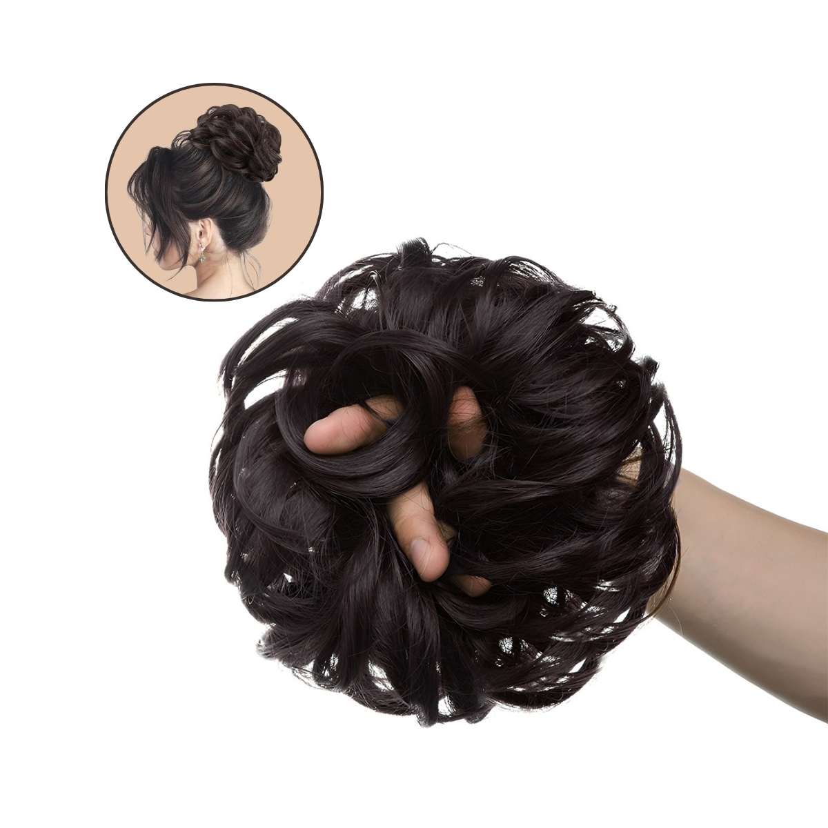 - Premium Quality: Heat resistance, durability, and a fuller look, our elastic hair bun ring is packed with all the good things. The specially sourced synthetic fibres ensure that the artificial hair bun retains its colour, texture and shape over time. The scrunchie elastic is flexible, thus it suits all hair types, whether thick or fine.
