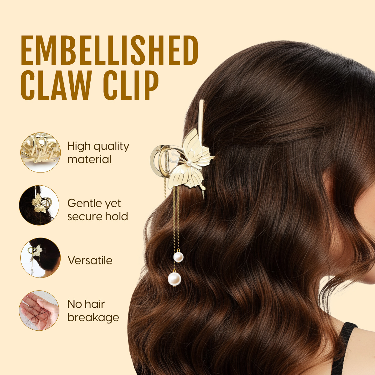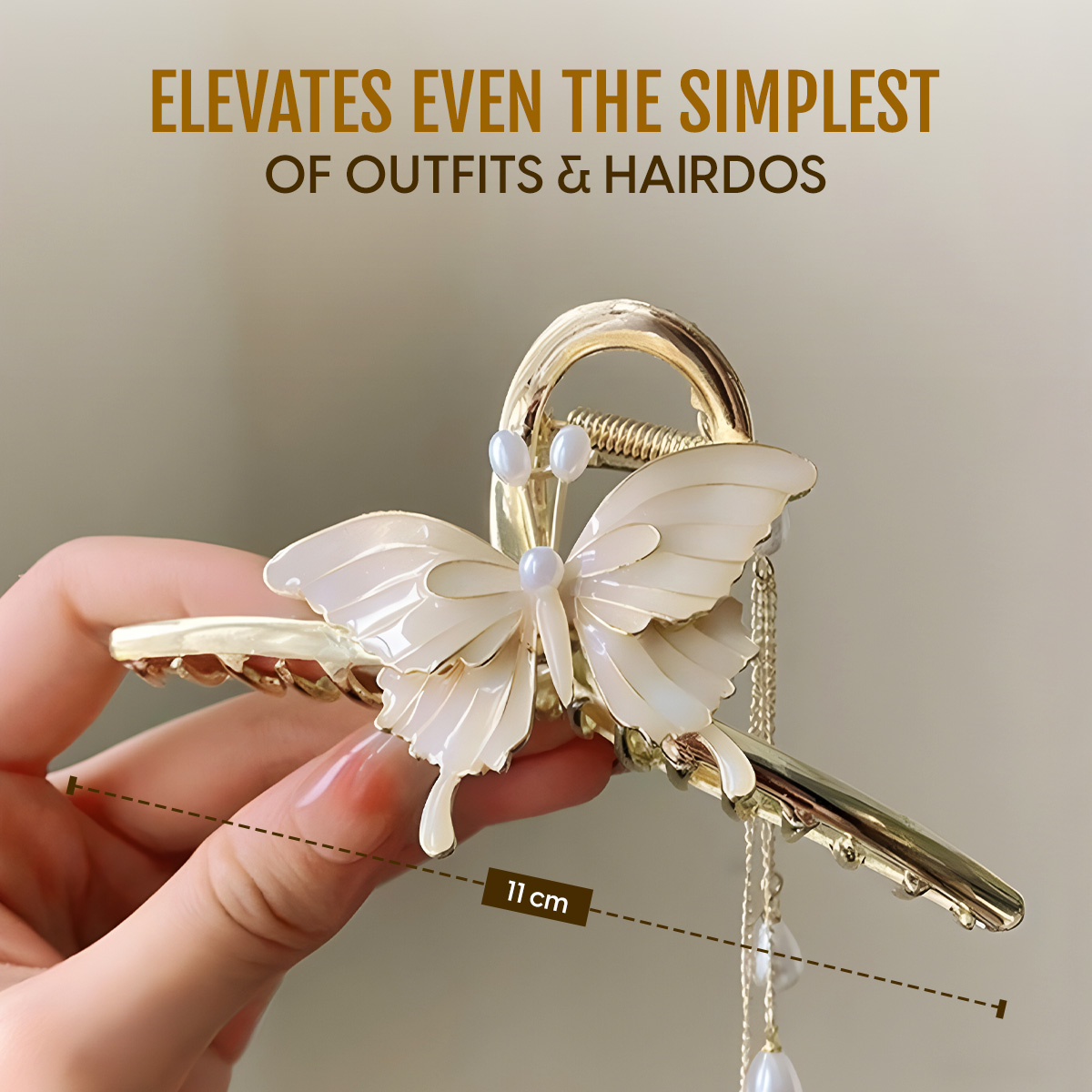 - STYLING TIPS: With its elaborate design, wear this butterfly wings hair claw clip with a monochrome outfit for that subtle pop of elegance or luxury. You can also wear it with a heavy traditional ensemble to elevate the look. Even a simple hairdo will be enhanced with this large butterfly claw clip. This metal butterfly claw clip is easy to use. Just snap it on for quick, hassle-free styling anytime.