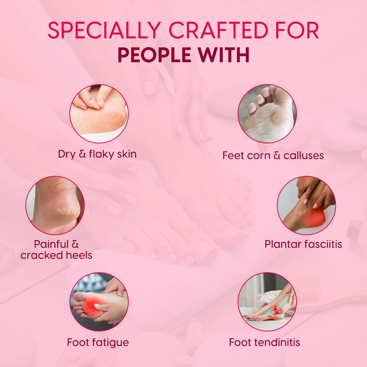 - At Home Pedicure: With our pedicure socks, enjoy a spa-like pedicure right in your bedroom without having to visit the salon. These cracked heel repair socks help restore and strengthen the skin barrier for women and men of all ages.