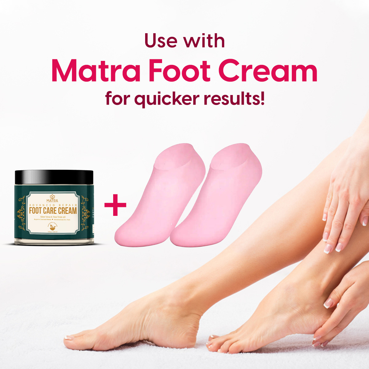 Have you been neglecting the ones who carry and support you all day long and yet do not receive the appreciation they deserve? It’s time to give some much-needed love to your feet with the Matra Moisturising Silicone Socks. These heel repair socks wrap your feet in deep hydration, helping restore softness, smoothness and comfort with every wear. Our gel socks for dry cracked feet create a gentle barrier that boosts the absorption and efficacy of your favourite creams, delivering visible relief from dryness, roughness and cracked heels. Designed for effortless self-care, these silicone moisturising socks stretch comfortably to fit most foot sizes while offering a snug, breathable feel you can wear while resting, relaxing or drifting into sleep. Give your feet the pampering they’ve been waiting for, because happy feet mean a happier you.