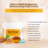 ✅RICH MOISTURIZATION: Infusion of effective emollients like Turmeric, Saffron, Shea Butter, and Vitamin E in Matra Haldi Hyaluronic Moisturizing Cold Cream delivers intense moisturization to dry and parched skin. The rich, creamy texture gets absorbed into the skin quickly and smoothes the skin’s texture. This improves the quality of the skin over time.