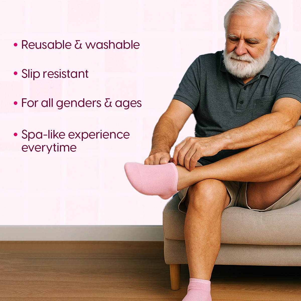 - At-Home Spa Care: Our silicon socks recreate a gentle spa routine right at home. Their consistent moisture helps ease discomfort and promotes skin rejuvenation without any salon visits. Our foot moisturising socks are ideal for relaxing after long days, allowing the feet to recover quietly while you rest.