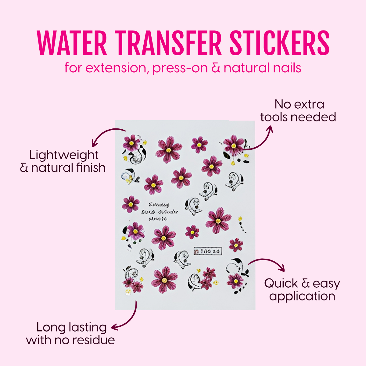 - Endless Designs: Our nail stickers for nail art give you endless styling options. These floral nail art stickers are curated to match every vibe, be it minimal, festive or full glam. With assorted sizes and patterns, our flower nail art stickers let you switch from subtle detailing to statement nails in seconds. These water transfer nail decorations look super natural and lightweight, as if hand-painted on!