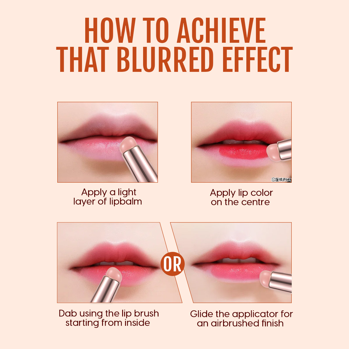 - Dab the brush into your lip product, then gently press over your lips to build the blurred effect.