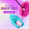 GENTLE DEEP CLEANSING FOR MAKEUP BRUSHES: Dirty makeup brushes are the favorite place for bacteria to breed! With our premium makeup brush cleaner, not anymore! Specially designed for deep cleansing even the dirtiest of makeup brushes, our makeup brush cleaner bowl effectively removes accumulated makeup, pigment, gunk, and dirt for brushes as clean and good as brand new.