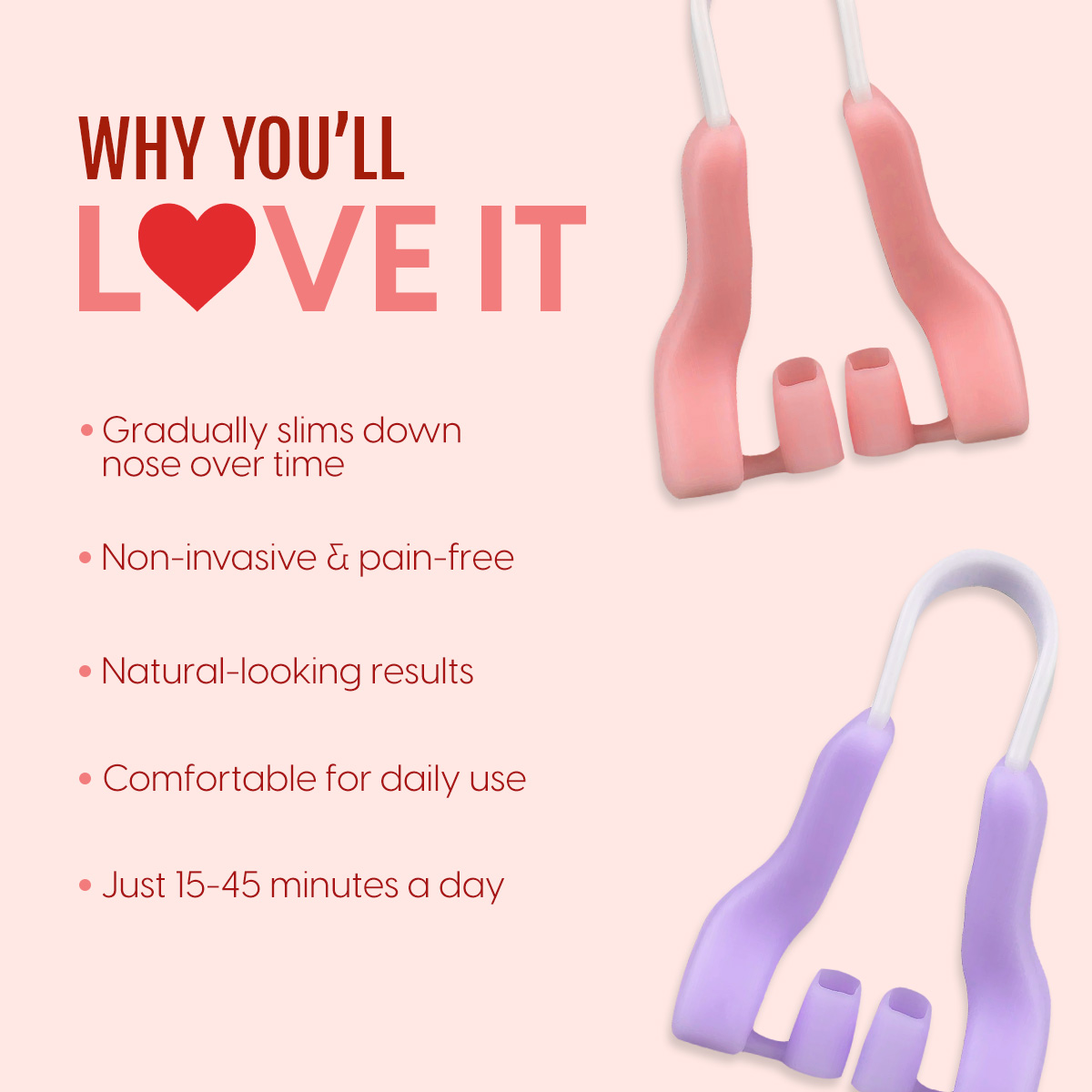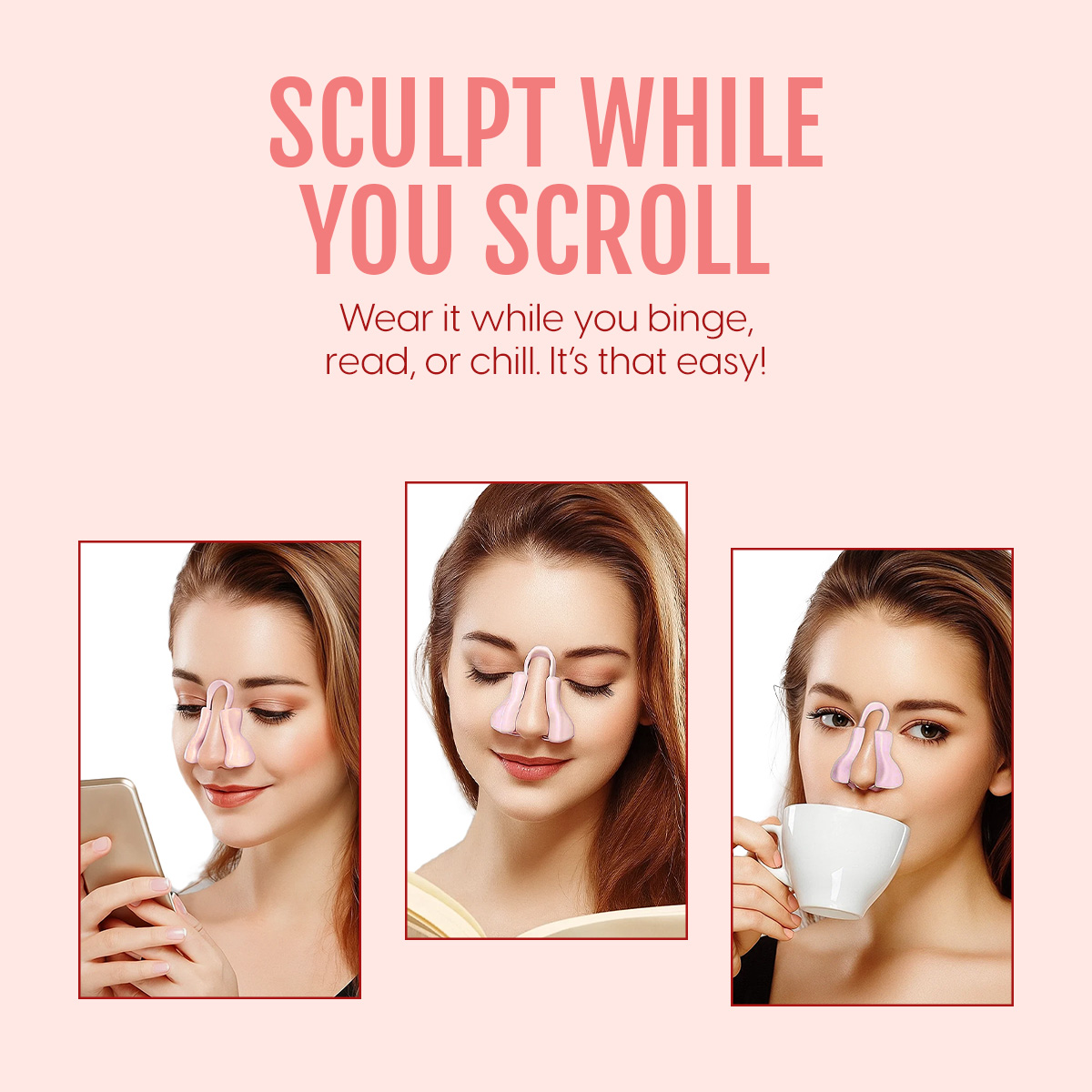 - Easy To Use: Just place the nose slimming tool on your nose and adjust accordingly. You can wear it while reading, watching TV, cleaning (or when you’re doom-scrolling). Wearing it for 15-45 minutes every day will gradually make your nose appear slimmer.