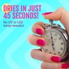 DRIES IN JUST 45 SECONDS: Life is too short to wait for your nails to dry! Our quick-dry nail lacquer dries in less than 45 seconds of application and needs no UV-lamp or LED treatment to dry. No more smudging, endless messy wiping & mental breakdowns!