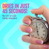 DRIES IN JUST 45 SECONDS: Life is too short to wait for your nails to dry! Our quick-dry nail lacquer dries in less than 45 seconds of application and needs no UV-lamp or LED treatment to dry. No more smudging, endless messy wiping & mental breakdowns!