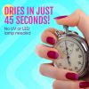 DRIES IN JUST 45 SECONDS: Life is too short to wait for your nails to dry! Our quick-dry nail lacquer dries in less than 45 seconds of application and needs no UV-lamp or LED treatment to dry. No more smudging, endless messy wiping & mental breakdowns!