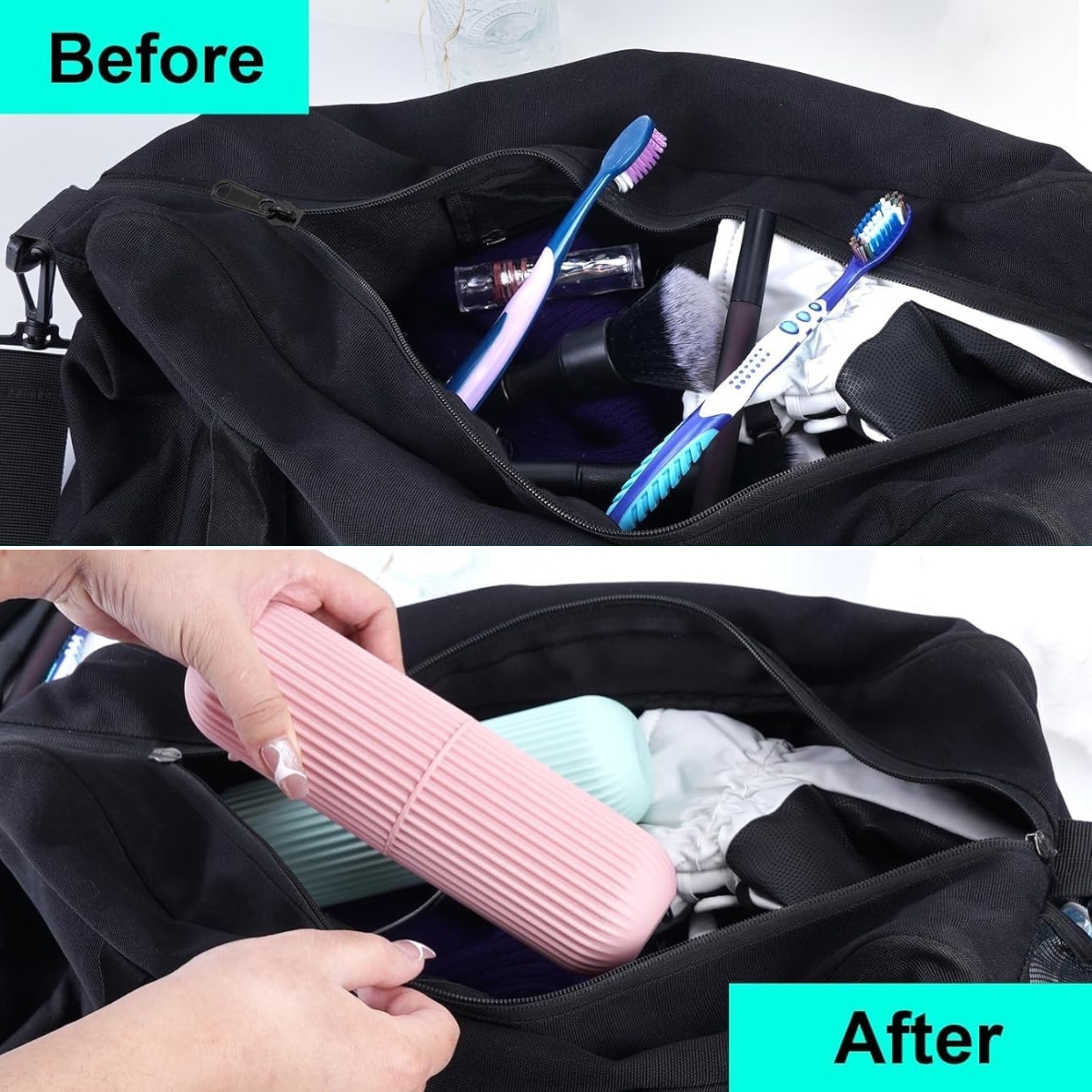 - Durable & Hygienic: Made from safe and durable materials, this toothbrush travel case is sturdy, water-resistant, and long-lasting. The portable toiletry holder keeps items dry and germ-free.