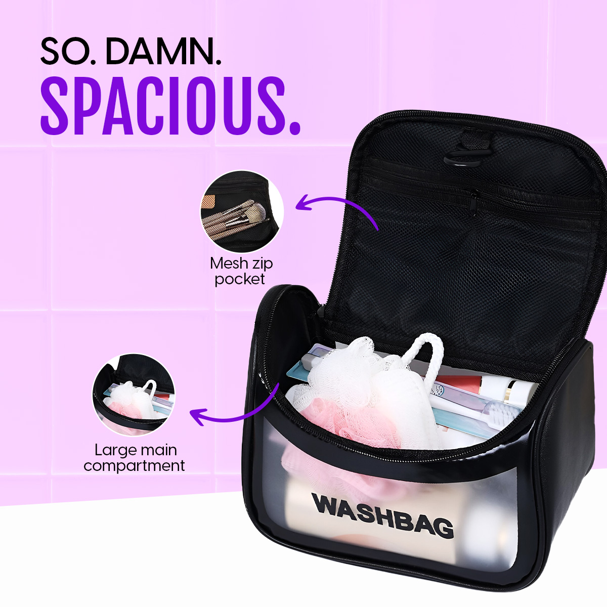 - SPACIOUS AND SECURE: Our toiletry bag consists of a spacious main compartment which can store your innerwear, cosmetics, shaving kit and much more. This wash bag makeup bag also features a mesh zip compartment. With a double zipper closure, our toiletry pouch keeps your items safe and secure.