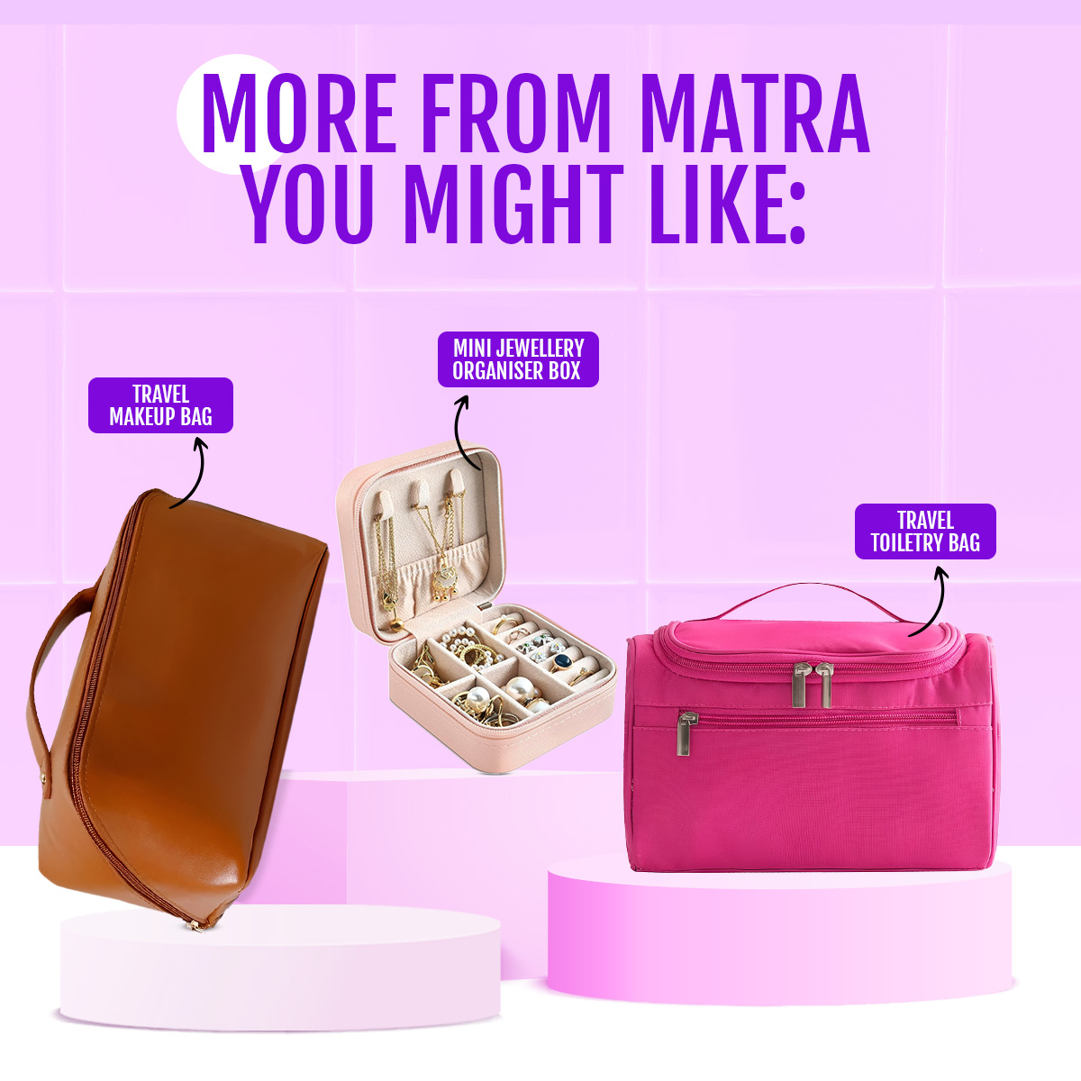 The last thing we want you to deal with on your vacay is a messy counter or chaotic luggage. That’s where Matra Travel Wash Bag comes in. Crafted with a sleek, minimalist design, this stylish wash bag makeup bag is more than just a pretty pouch. It is water resistant and tear resistant, thus keeping your cosmetics, skincare, and toiletries safe and secure, no matter where your adventures take you. With two compartments for easy organization, you’ll never have to dig through your bag to find that tiny serum bottle or elusive toothbrush again. Compact yet spacious, this washbag fits seamlessly into your suitcase or backpack, making it perfect for weekend getaways, long-haul trips, or even daily use at the gym. Say goodbye to clutter and hello to convenience – because with our toiletry bag, everything you need is right where it should be.